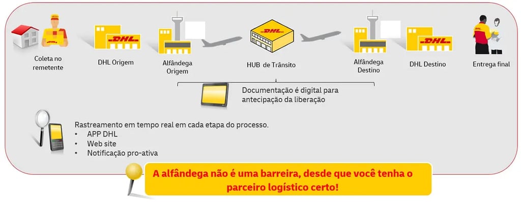 Na DHL Express você conta com informações em tempo real, operações customizadas, controle de qualidade para garantir segurança e integridade em todos os envios internacionais, além de contar com operação de entrega porta a porta, do seu agente autorizado até a porta do destinatário.
